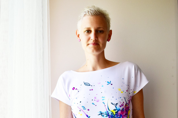 Na výtvarno nemá žádný diplom. Techniky zkouší, sbírá, testuje nové a neustále se učí. Prostě ráda kombinuje. Ze svých látek také tvoří oblečení – trika, tílka, šaty a sukně, mikiny a legíny, které svými barvami rozzáří ulice.