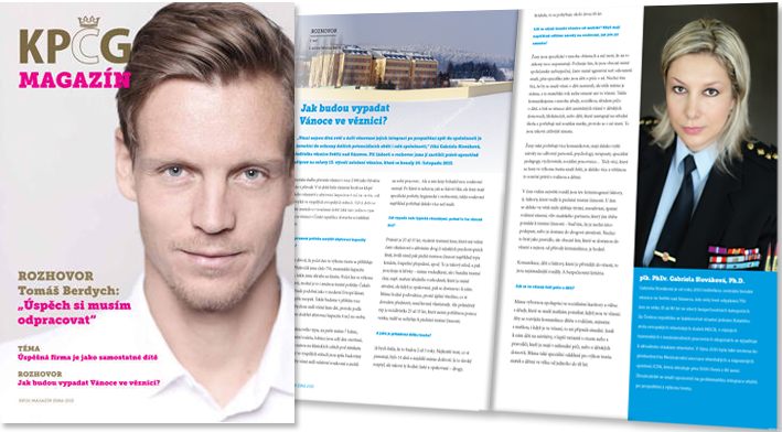 Exkluzivně pro Magazín KPCG přinášíme rozhovor s českou tenisovou jedničkou a 6. hráčem ATP Tomášem Berdychem. Velmi zajímavý a inspirativní je také rozhovor s vítězem kategorie OSOBNOST Českého Goodwillu 2015 Václavem Kádnerem. A navíc přinášíme rozhovor s ředitelkou věznice Světlá nad Sázavou plukovnicí Gabrielou Slovákovou na téma "Vánoce za mřížemi", který nutí k zamyšlení.
