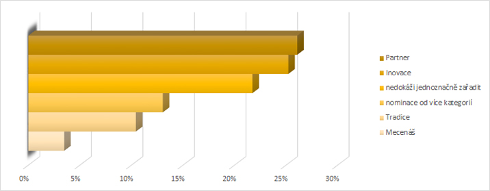 Necelá osmina firem získala nominaci do více kategorií zároveň. Pětina nominujících (22 %) se nedokázala jednoznačně pro některou z kategorií rozhodnout. V kategorii Tradice byla nominována desetina firem a nejméně podnikatelů veřejnost nominovala do kategorie Mecenáš.